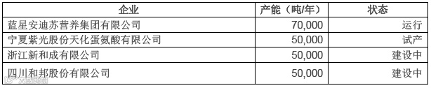 重庆紫光化工股份有限公司(重庆紫光)宁夏和重庆的两间蛋氨酸工厂在2015年会有大量的产能释放,能大大增加国内固体蛋氨酸的供应量,减少中国对进口蛋氨酸产品的依赖。近几年国内市场蛋氨酸每年的需求量18万吨左右。2014年国内固体蛋氨酸主要依靠从赢创、住友化学、安迪苏进口, 1~10月总共进口固体蛋氨酸10.49万吨。而2015年重庆紫光如果蛋氨酸产能全部释放,产能会达到11万吨/年。预计2015年重庆紫光蛋氨酸的实际产量能满足国内蛋氨酸市场25%以上的需求。