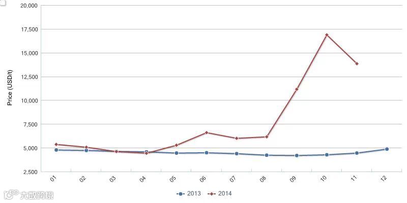 国内固态蛋氨酸市价行情,2013年1月-2014年11月