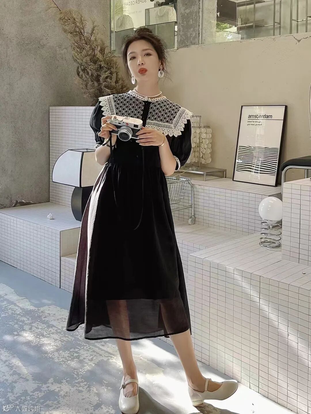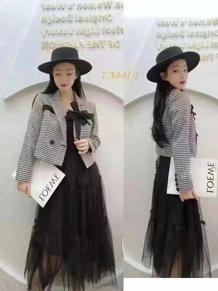 穿着优雅大方,注重品质细节。黑色的裙子再搭上一件格子外套,让其变得不再单调。