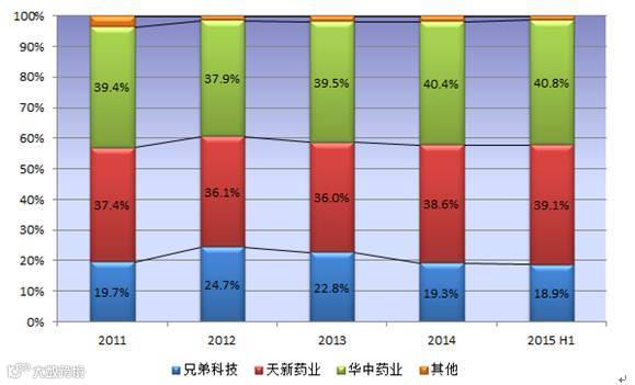 2. 在中国主要维生素B1出口企业中,江西天新药业有限公司(2015H1维生素B1产能4,000吨/年)所占的出口比例正在逐渐上涨。
