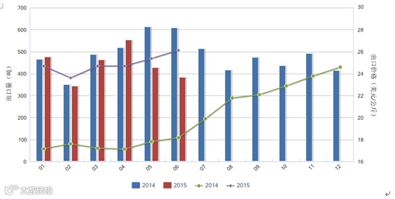 2015年上半年出口量较2014年同期明显减少主要和以下两个因素有关: