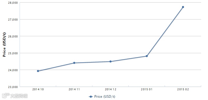维生素B12(1%饲料级)市场价格, 201410-201502