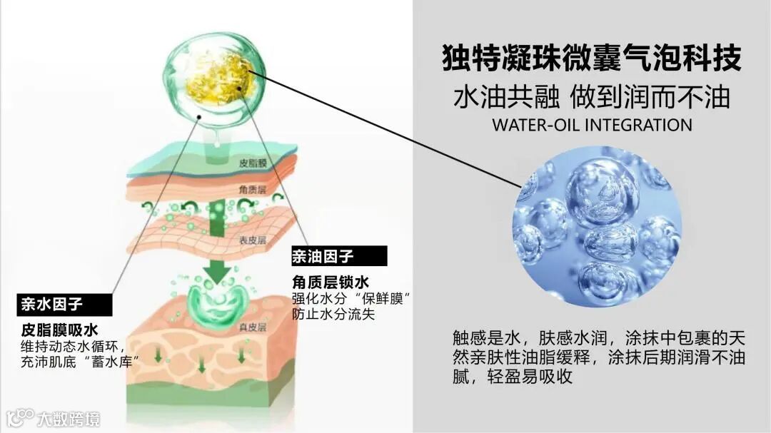 采用独特油珠微囊科技,精准调配水油双相密度,将油珠和精华完美结合,做到水油同补,肤感润而不油