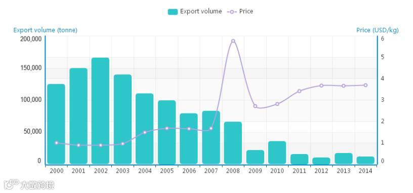 黄磷是不可再生的资源型产品,在调整出口关税政策前后,我国是国际市场上最大的出口国。