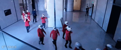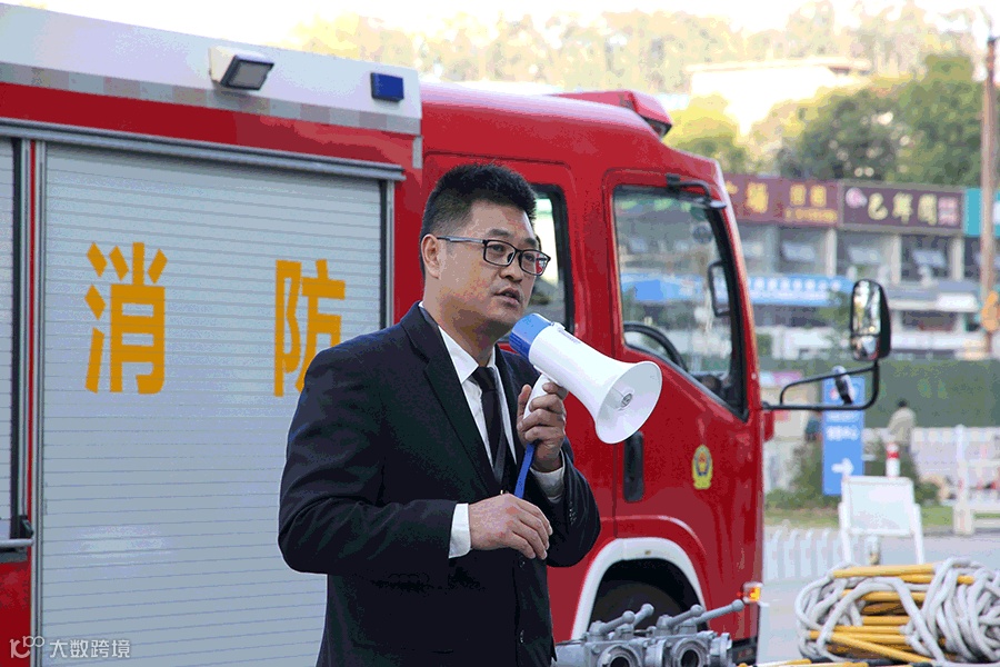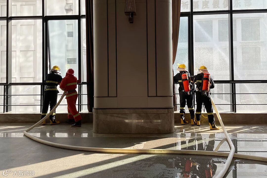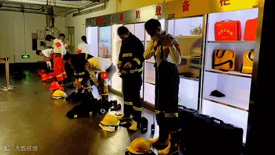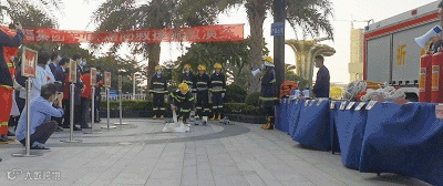 ●总结过后,安保部为大家现场表演抛水带、穿消防服。