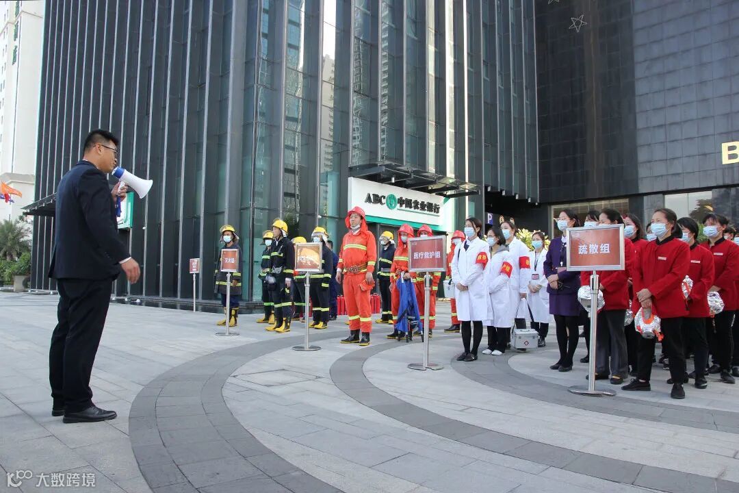 随着各小组出色完成任务,向现场指挥汇报情况,本次演练宣布圆满成功。现场指挥在祈福集团中心一楼外广场集结处对演练各环节进行总结,对全体参加演练人员严肃认真、服从命令、听从指挥表示高度的肯定。