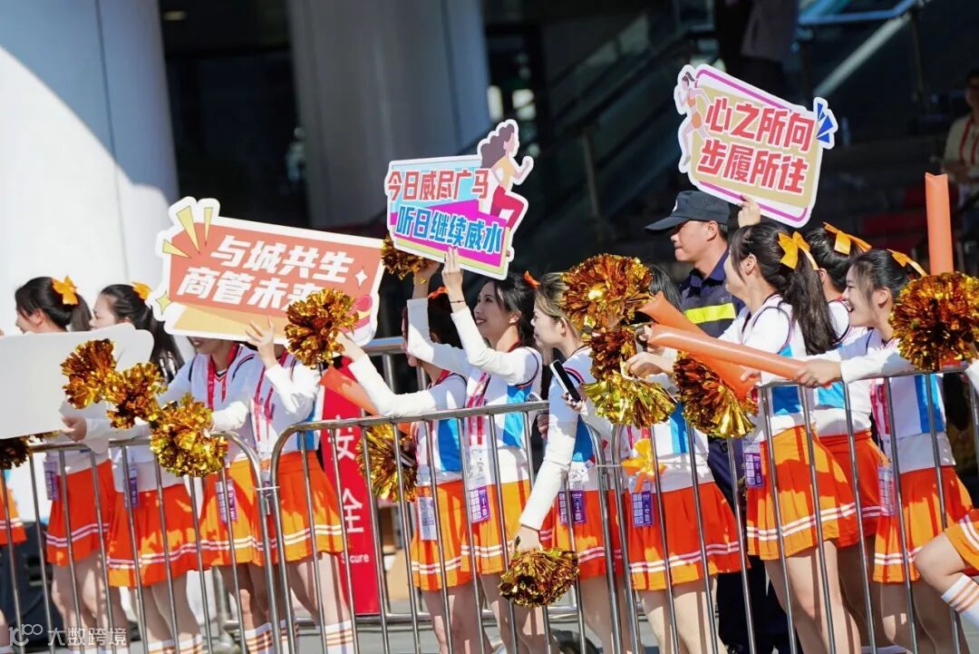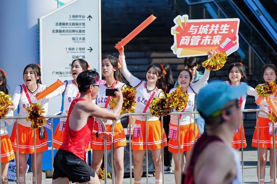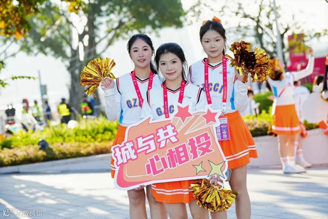 今年,广州城投商管啦啦队再度集结!终点线旁,她们化身一抹跃动的暖阳——小姐姐们身着亮眼橙色,手捧灿烂金花,手持加油手牌与应援手幅,用灿烂的笑容和热情的欢呼,为每一位全力冲刺的跑者送上最地道的“广式打Call”。一声声加油,汇聚一城热情;一次次击掌,见证一路征程。