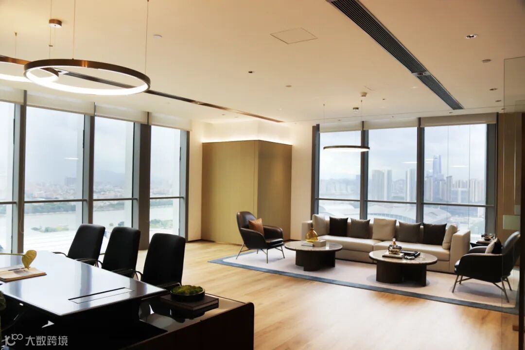 高区38-47F为琶洲公馆,提供338–479㎡天际会客厅。项目整体为高端客户以及总部企业定制灵活多元的产品组合。公馆产品设计以海上丝绸之路为灵感,提供三种创意方案,“珠帆远影”创意空间主打无敌景观,拥揽地标级城市天际线;“琶洲之翼”主打简约世界风,展望世界;“隐奢之境”,侧重于生活品质,氛围奢雅。