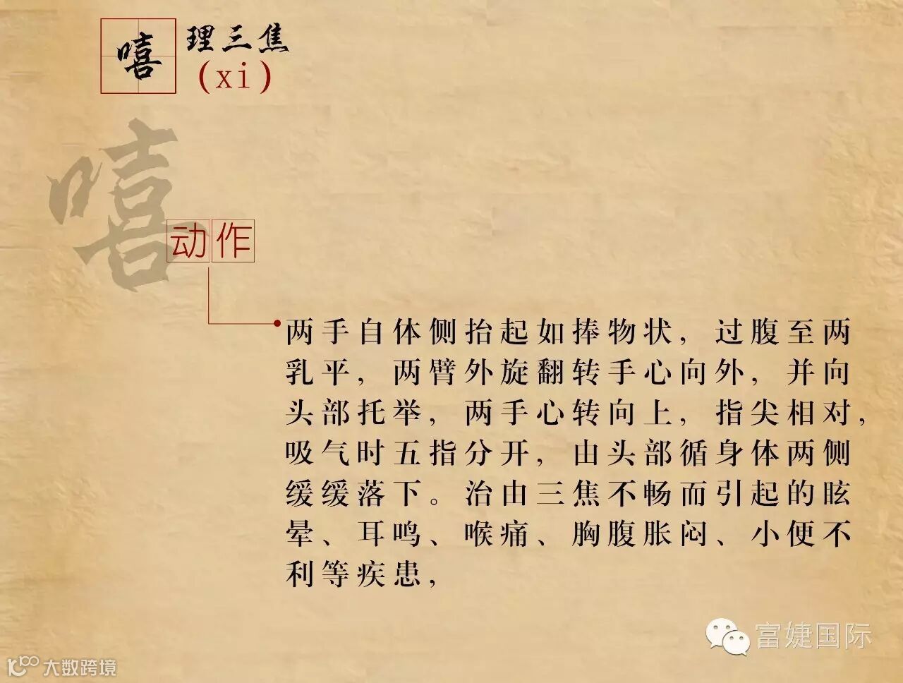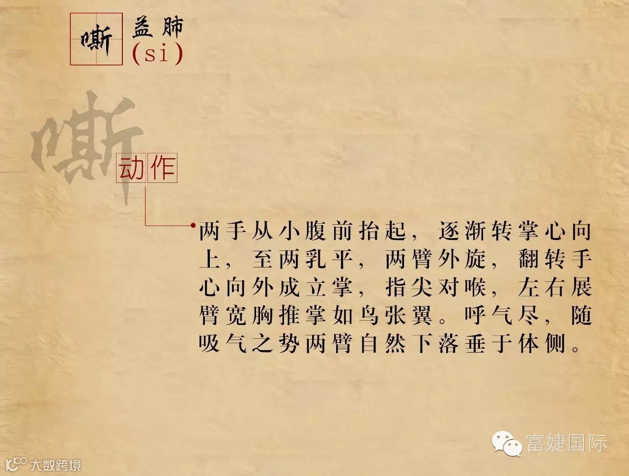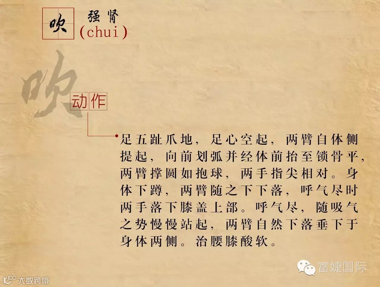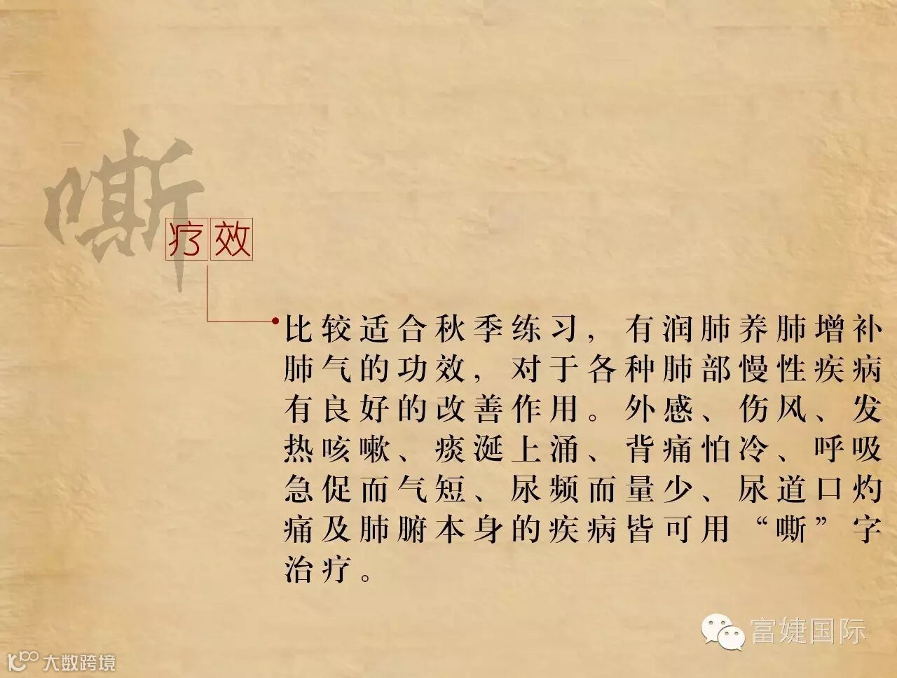 六字诀是我国古代流传下来的一种吐纳类功法。据考,该功法最早的文字记载见于《尚书》。具体的操作方法始见于南北朝陶弘景的《养性延命录》:“纳气有一,吐气六。纳气者谓吸也,吐气者谓吹、呼、唏、呵、嘘、皆吐气也。”自隋以来,历代文献对六字诀有不少论述,例如孙思邈的《千金方》、汪昂的《医方集解》、龚廷贤的《寿世保元》、冷谦的《妙龄修旨》。明代冷谦的《修龄要旨》把六字按照五脏的关系与四季配属起来:“春嘘明目木扶肝,夏至呵心火自闲,秋呬定收金肺润,肾吹唯要坎中安,三焦嘻却除烦热,四季长呼脾化餐,切忌出声闻口耳,其功尤胜保神丹。”拓展了其应用范畴。