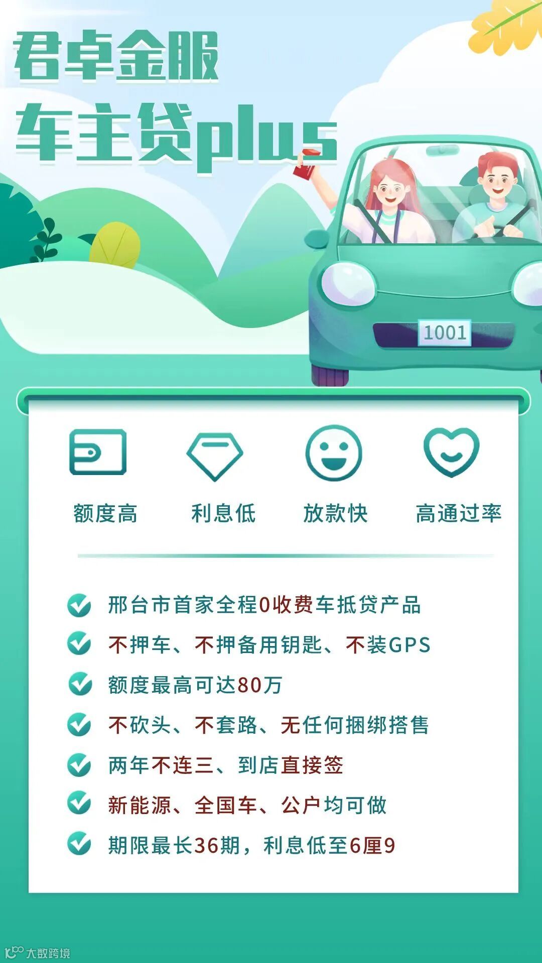 君卓金服专注车抵贷,无视征信查询,征信两年内无连三累六即可办理。15年以内车,评估3万以上即可。9厘9平息无合同额。多元产品,多维度助力客户,打造一站式签约中心。