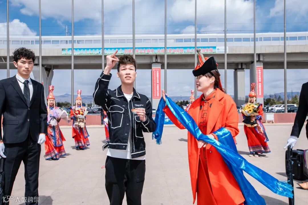 下机后就会看到我们的工作人员,为大家准备的接机仪式;内蒙热情的待客传统方式——斟酒敬客,献哈达来表达我们的热烈欢迎!