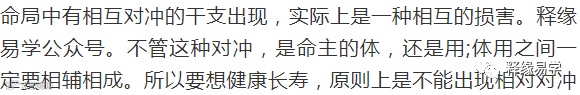 所以要想长寿、健康,四柱中不要日时刑冲月令。反之,如果月令没有遭遇严重刑冲,即使具有刑冲,但是有解救,或者这种刑冲,不会伤及月令,则是身体健康的表现,所以命主也能够健康长寿。
