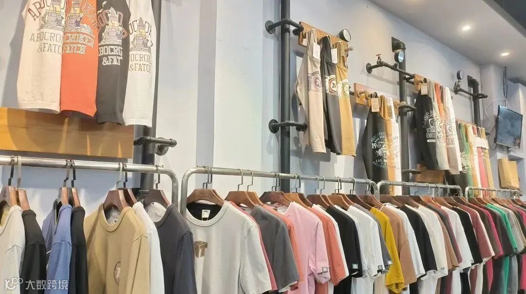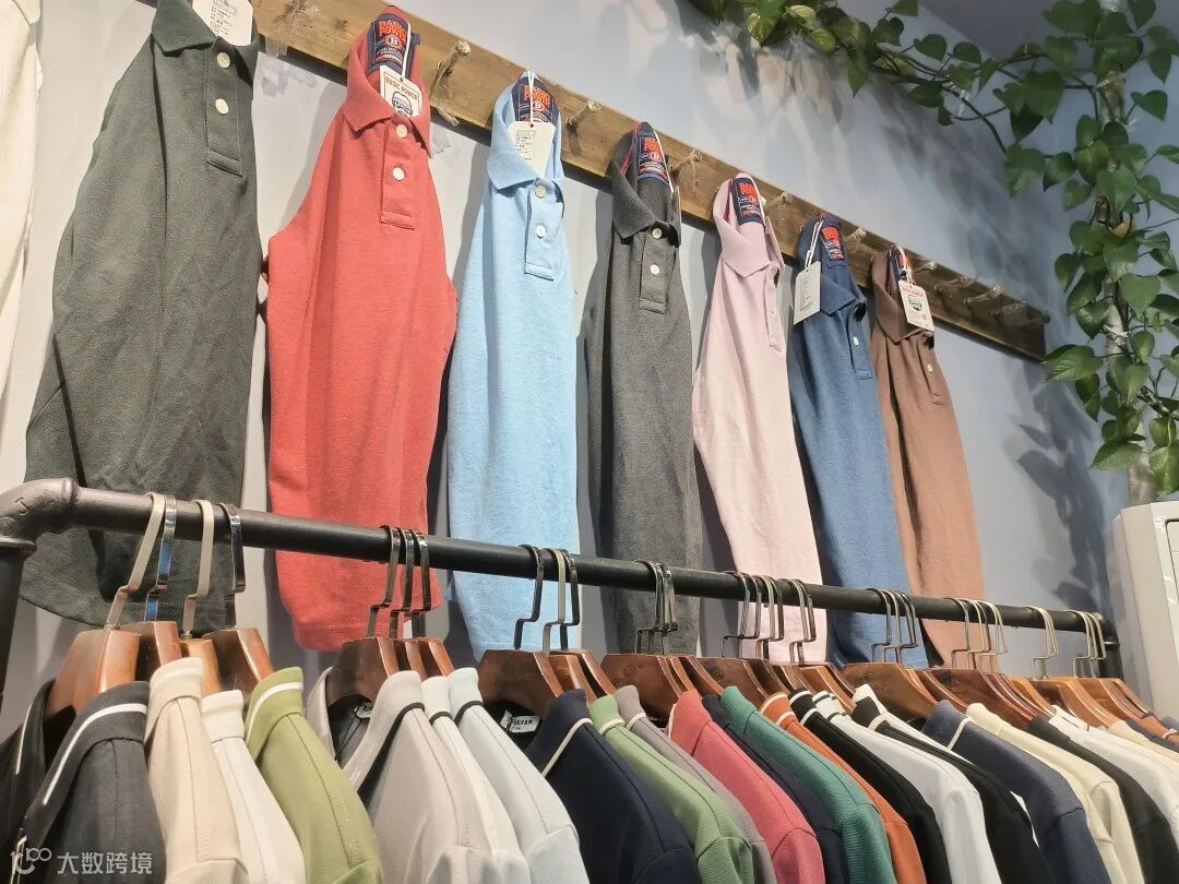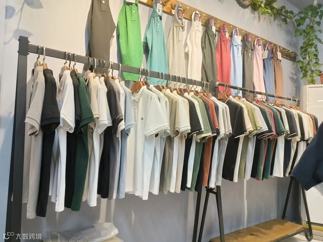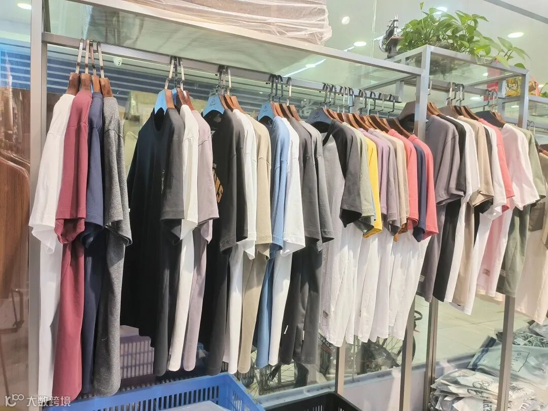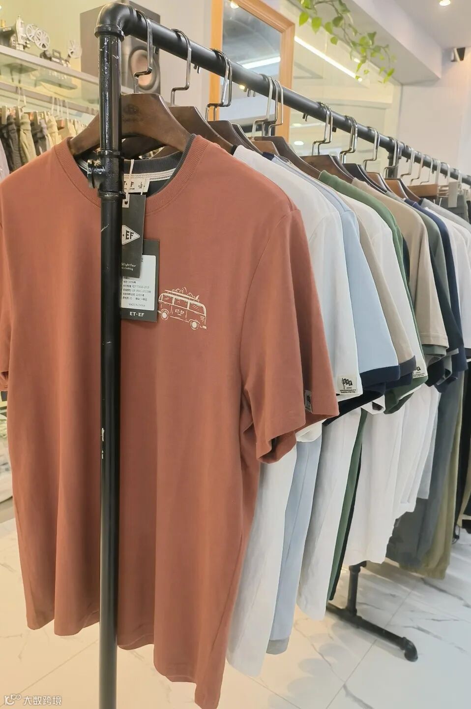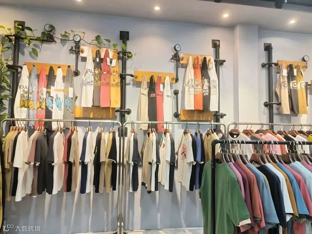 店铺坐落于锦东市场B8栋1211店,开门便可看到浓郁的美式复古装修风格,仿佛穿越了上个世纪。店内利用大量水管、原木、绿叶等材料在墙面进行陈列,划分不同的上衣款式让人眼前一亮,整个店非常有设计感,美式复古足以概括。
