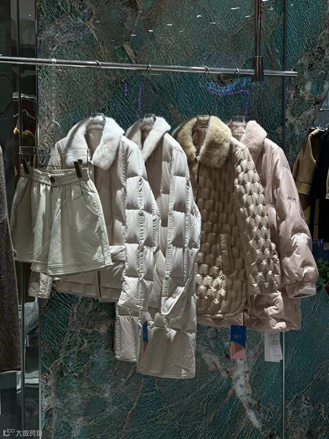 本季款式系列有:鹅绒服、羽绒服、皮毛一体、双面呢大衣、小香风外套套装系列、设计时装系列毛衣、连衣裙等等