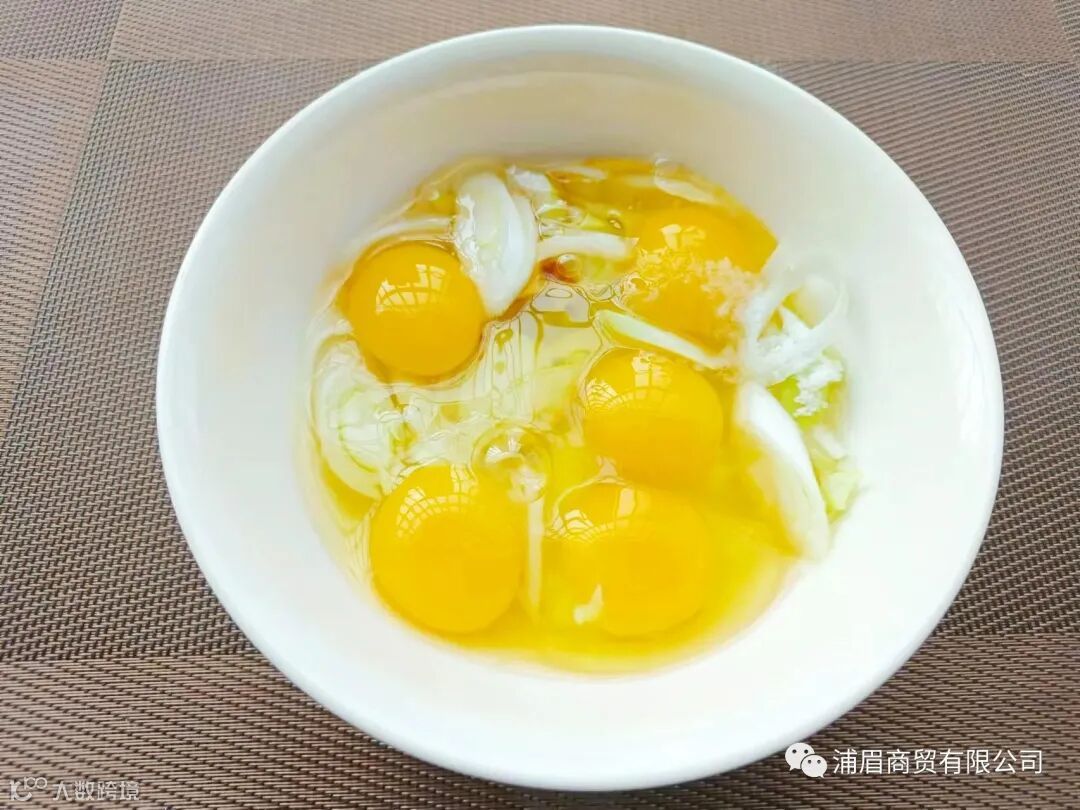 ②鸡蛋打入碗中,加几滴料酒,搅拌均匀。