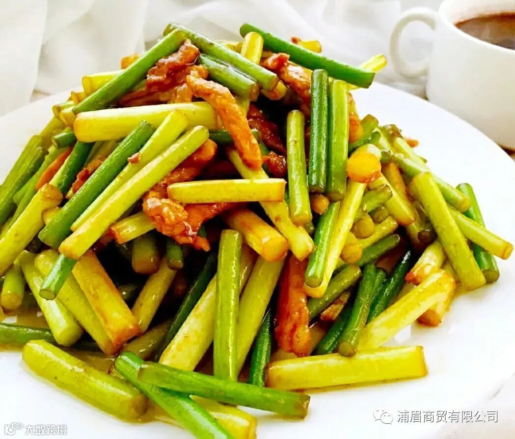 蒜苔是从大蒜中抽出的花茎,深受人们喜爱。蒜苔中含有辣素,其杀菌能力可达到青霉素的十分之一,还含有丰富的大蒜素、大蒜新素等,对人体也有好处。它可以凉拌吃、可以腌制吃、可以清炒等,冬季食用很下饭。