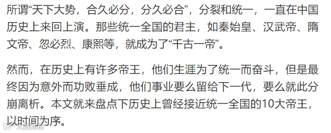 导读:历史上差一点统一的10大帝王:事业功败垂成,谁最可惜?