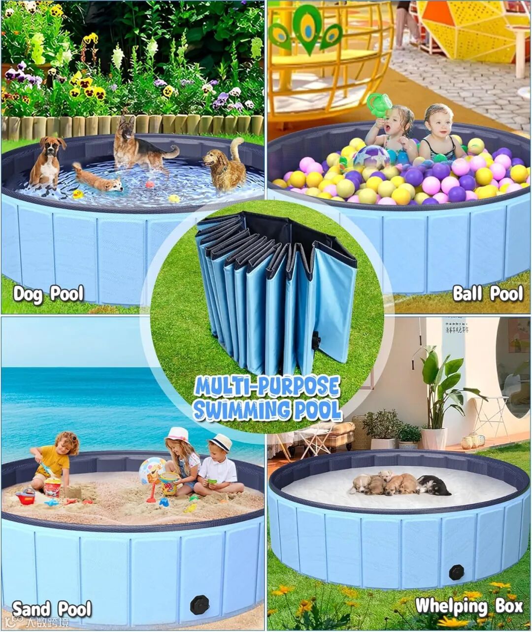 核心用途:表面上是给狗洗澡,实则是夏季清凉的“多功能刚需”。对于养大金毛、阿拉斯加的家庭,这就是个移动版水上乐园,甚至兼顾了小孩戏水池的功能。