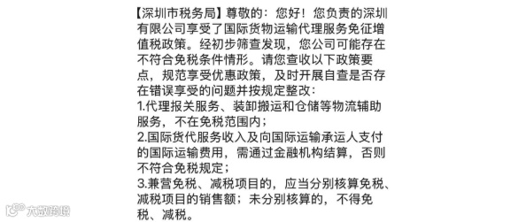 深圳货代行业正经历税务部门密集核查。清明节前后,多家企业收到通知,要求对“国际货物运输代理服务免税收入”申报进行自查自纠。税务机关通过发票比对发现,部分企业违规将应税收入计入免税收入,需及时冲红发票并更正申报。