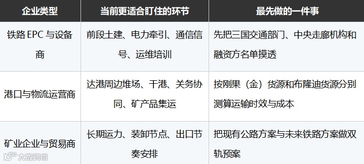 3. 矿业综合服务:整合铁路时刻、港口仓位、边境清关与矿山发运的企业将掌握运输主导权。