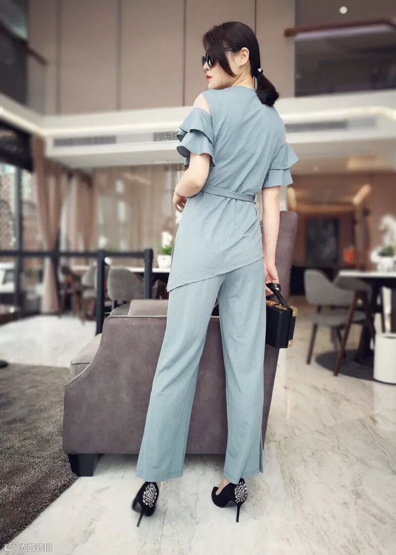 纯粹色调,散发着动人心魄光芒,荷叶袖与落肩巧妙结合