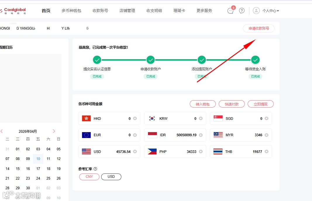 1.登录珊瑚跨境账户后,进入账户管理页面。