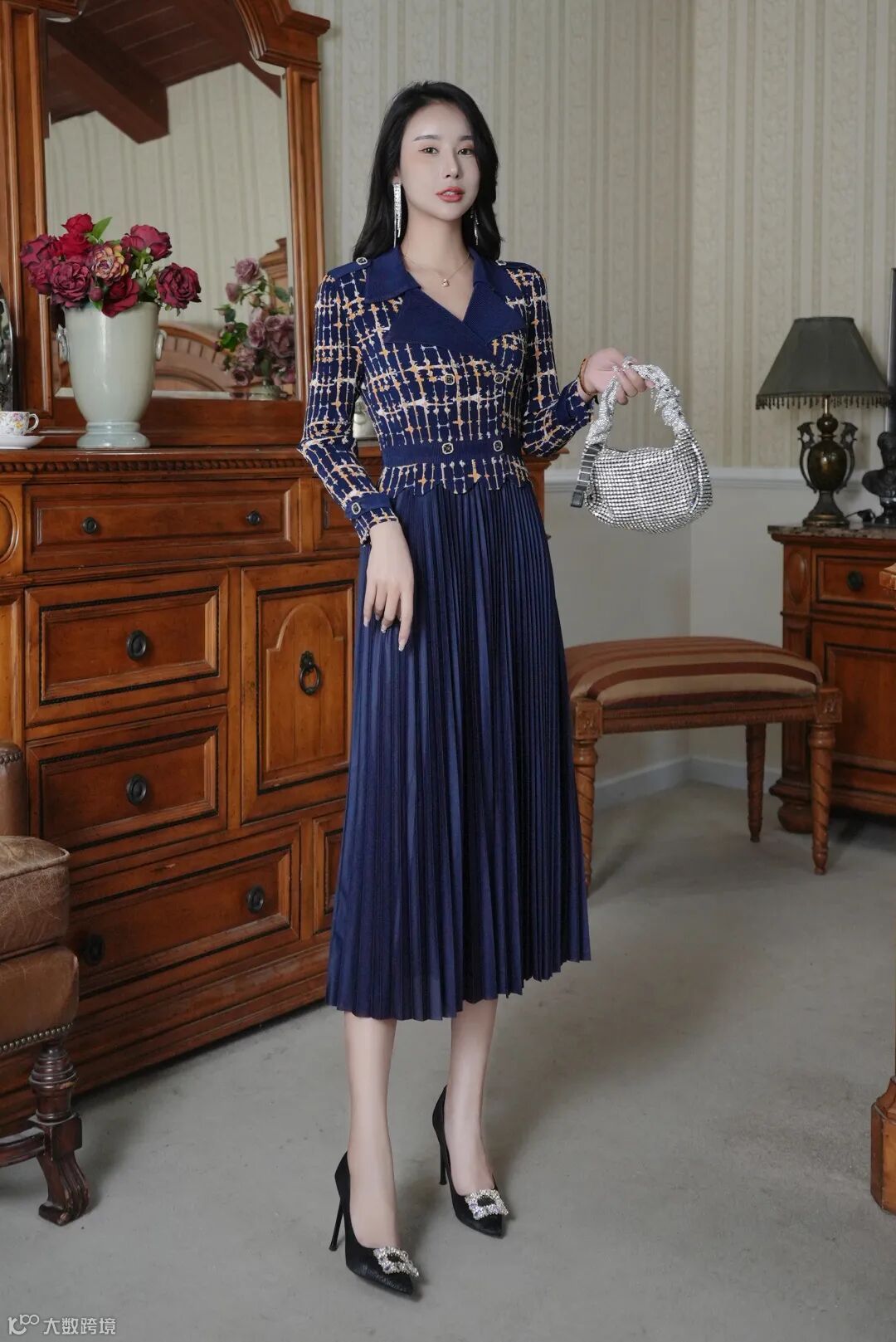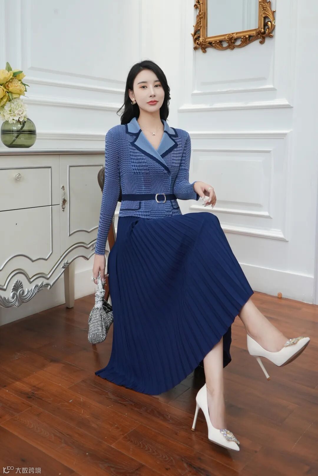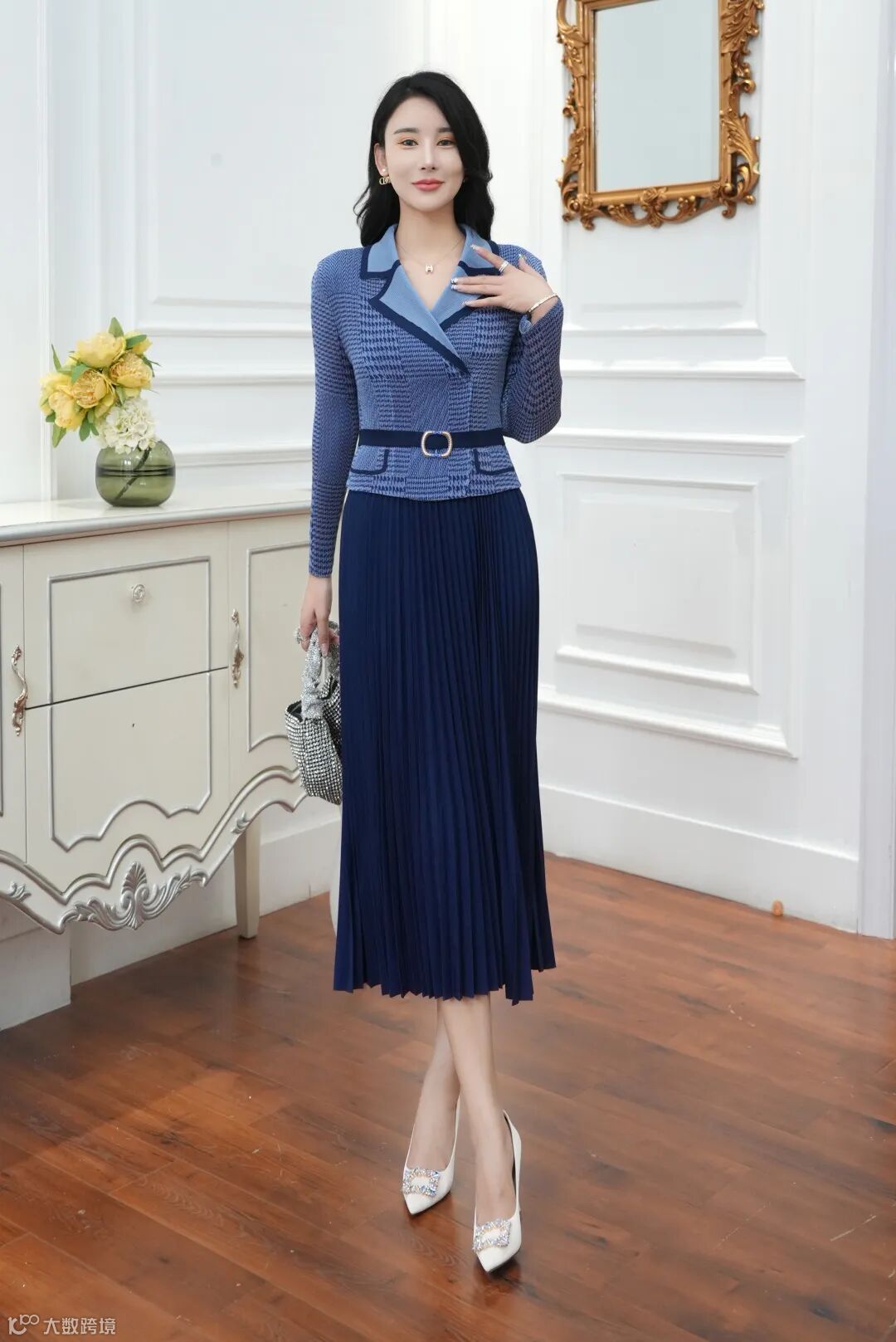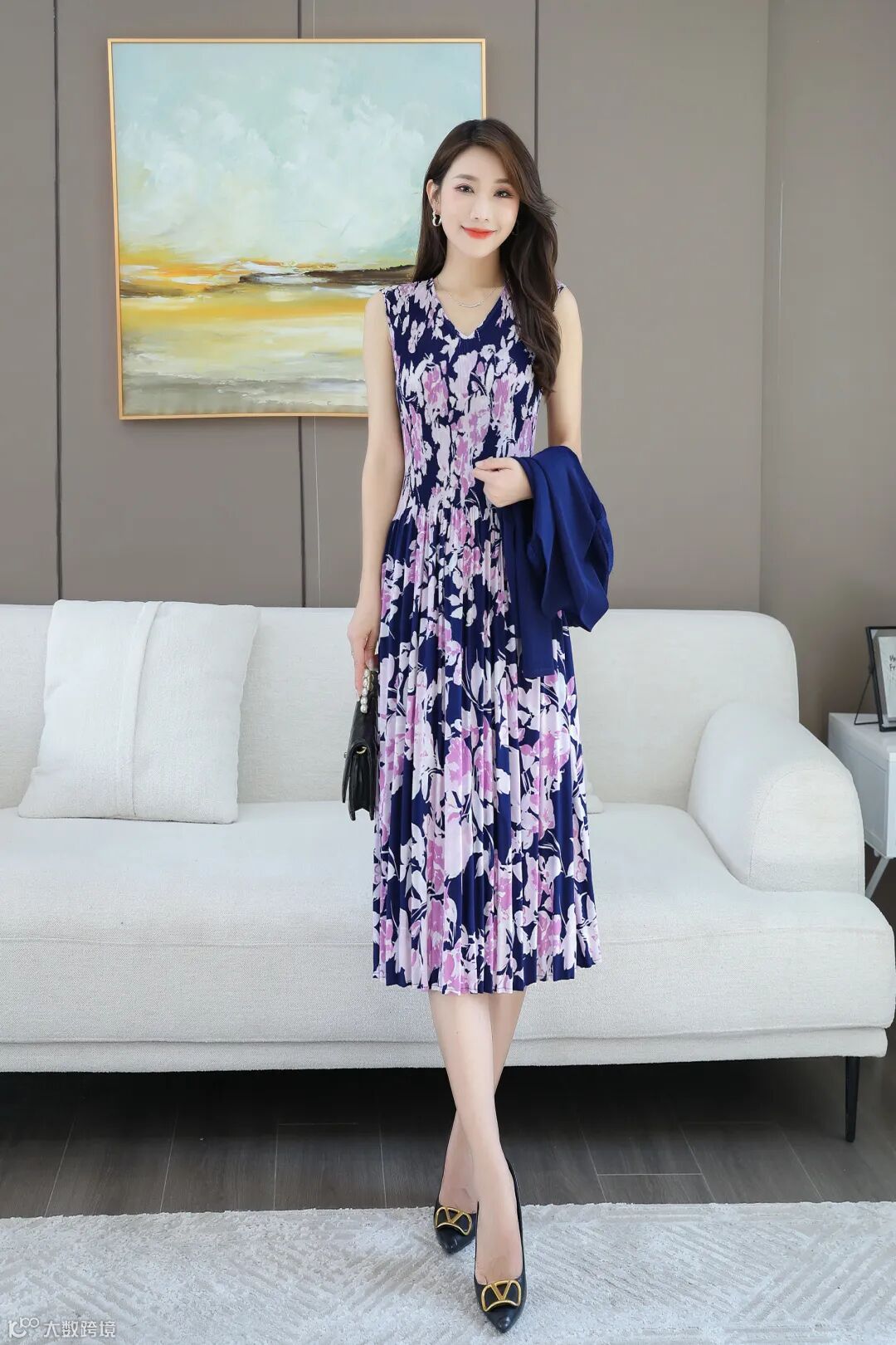面料经过压了两次褶皱,保证衣服不会变形、松垮。这种面料做成的裙子方便打理、携带。