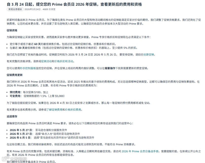 2026年亚马逊Prime会员日提报开启 规则调整与备战策略