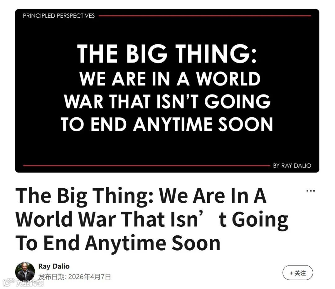 达利欧基于50余年全球宏观投资经验强调,当前局部冲突并非孤立事件,而是已深入交织、短期内无法结束的世界大战的一部分。公众注意力常被短期突发事件分散,却忽视以下六个关键维度: