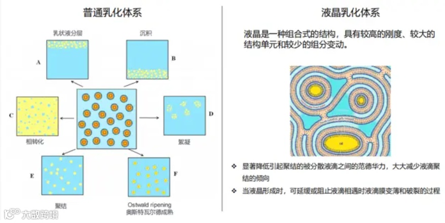 液晶乳化体系液晶是一种组合式的结构,具有较高的刚度、较大的结构单元和较少的组分变动。显著降低引起聚结的被分散液滴质检的范华德力,大大减少也低聚结的倾向。当液晶形成时,可延缓获阻止液滴相遇时液滴膜变薄和破裂的过程。
