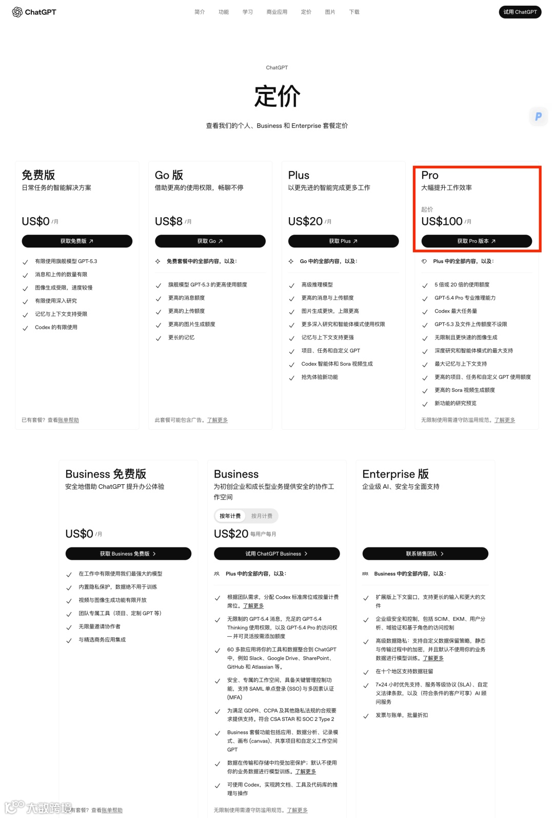 ChatGPT推出100美元Pro套餐 直接对标Claude