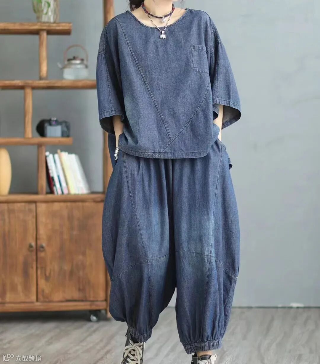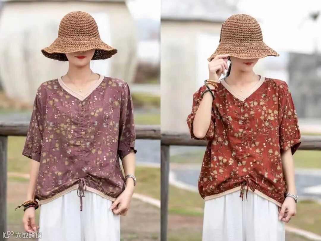 除了针织衫外,棉麻上衣、天丝牛仔套装