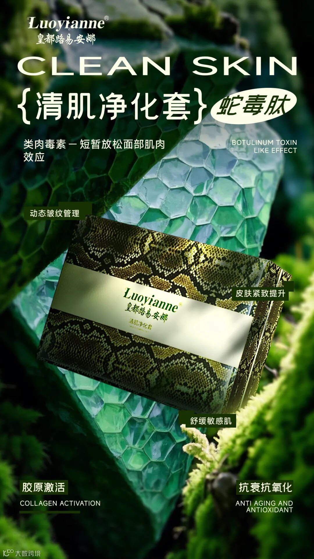 导读:【皇都路易安娜清肌净化套】中的蛇毒肽可以阻断神经信号传递,放松面部肌肉,减少动态皱纹,如眉间纹、鱼尾纹。