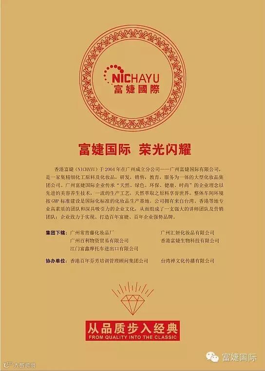 香港富婕是集产品研发、生产,营销策划、教育服务、外贸出口为一体的大型天然原料及护肤品的集团公司。