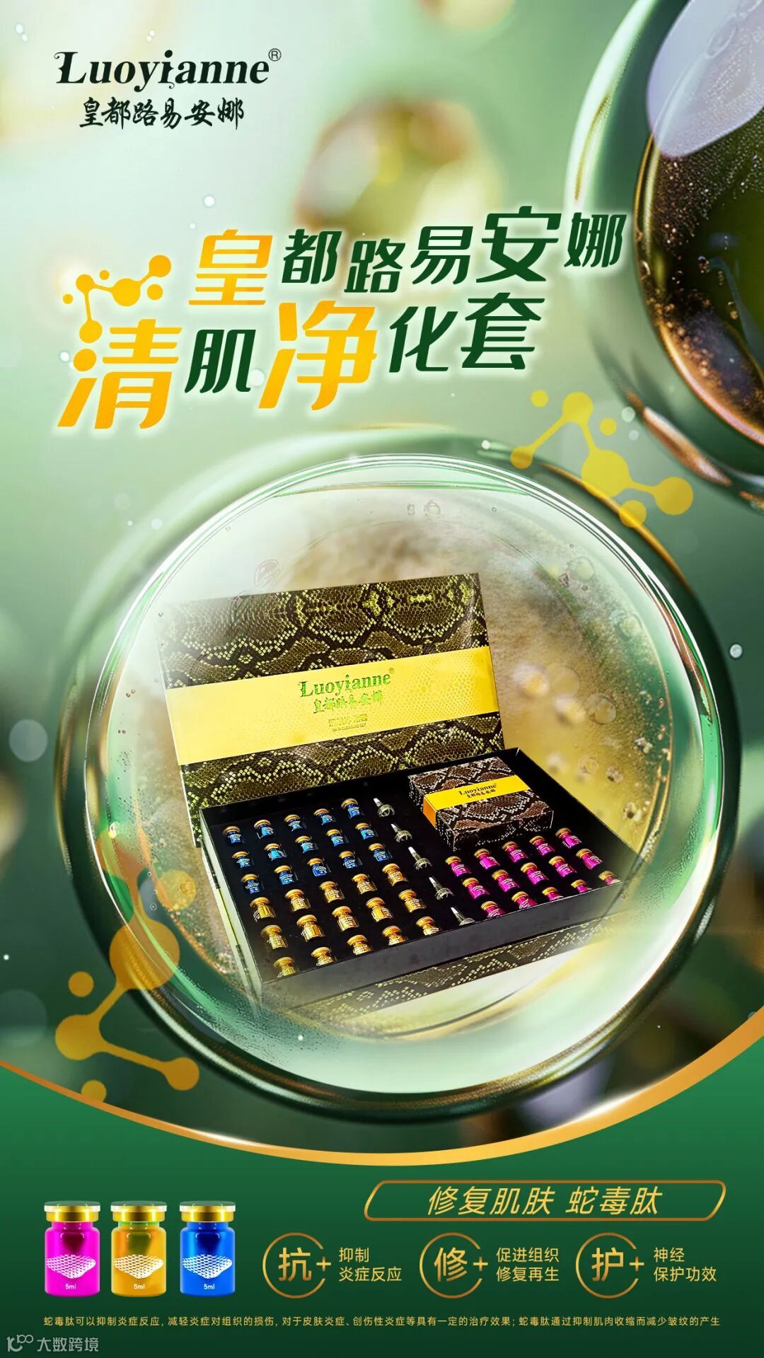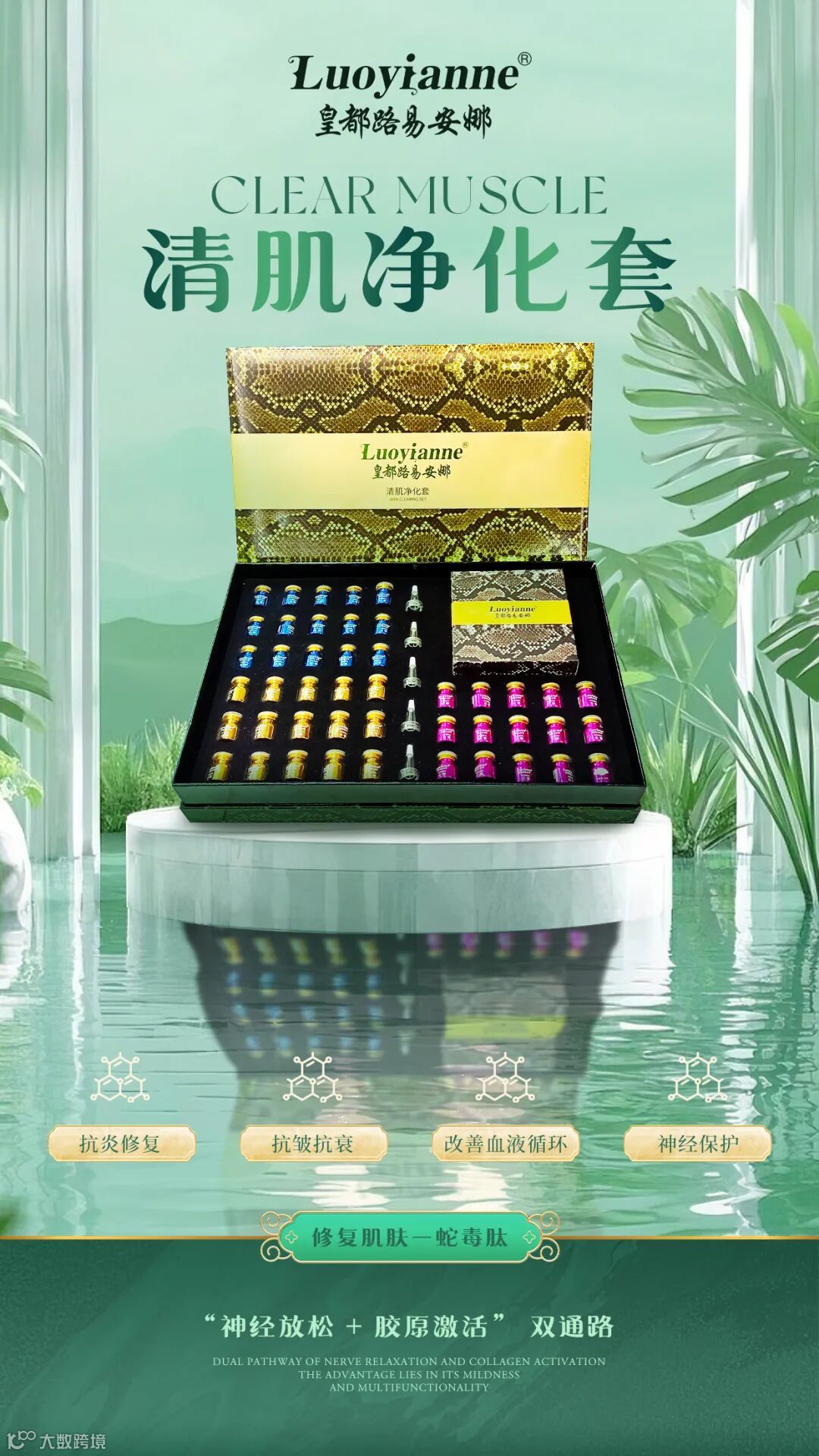 3、抗皱抗衰:蛇毒肽在护肤领域的应用尤为突出。它能够模拟蛇毒毒素活性,通过抑制肌肉收缩而减少皱纹的产生,导致肌肤产生紧缩现象,使得松弛的肌肤更加紧致有弹性。此外,它还可以促进胶原蛋白的生成,增强皮肤的弹性和光泽。