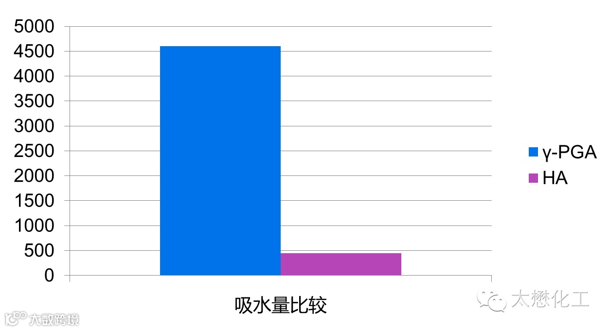 每克γ-PGA可吸纯水4600倍,比HA强10倍。