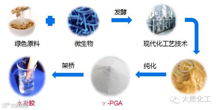 γ-PGA的规模化生产是以淀粉和谷氨酸为原料,通过现代生物工程技术和大分子结晶分离技术精制得到。