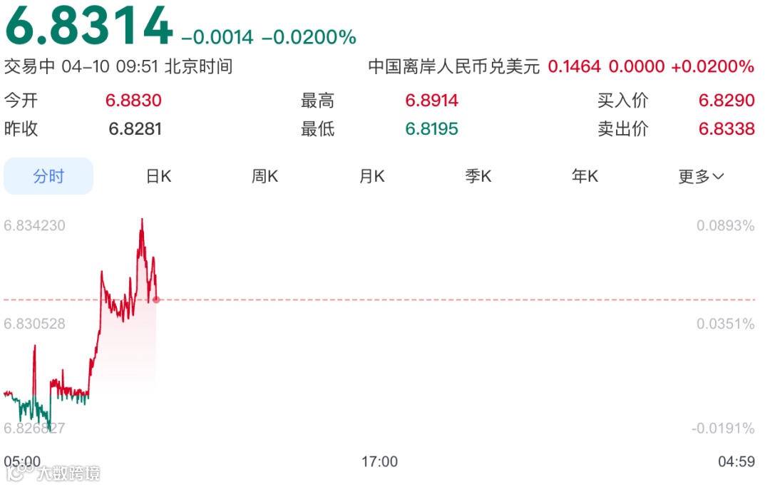 美元兑离岸人民币汇率