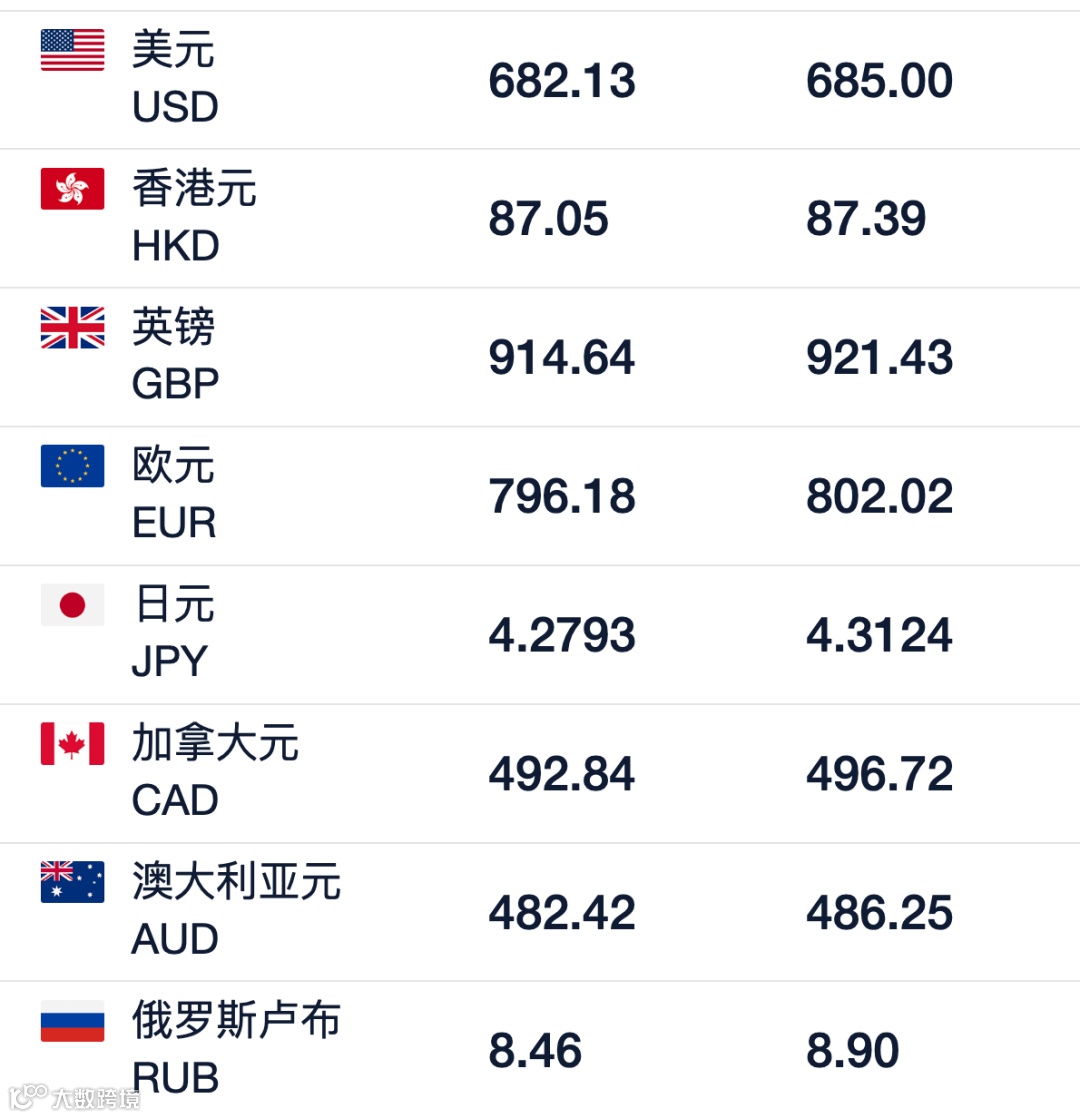 今日汇率
