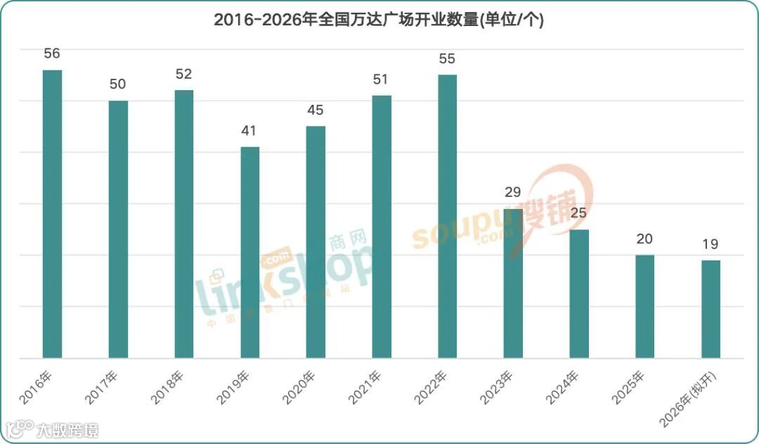 2016-2022年万达年均开业超40家,2023年起主动放缓扩张:2023年开业29座、2024年25座、2025年20座,2026年计划19座。轻资产占比提升、存量改造增多、下沉市场比重加大成为新阶段特征,体现商业地产回归运营本质的行业趋势。