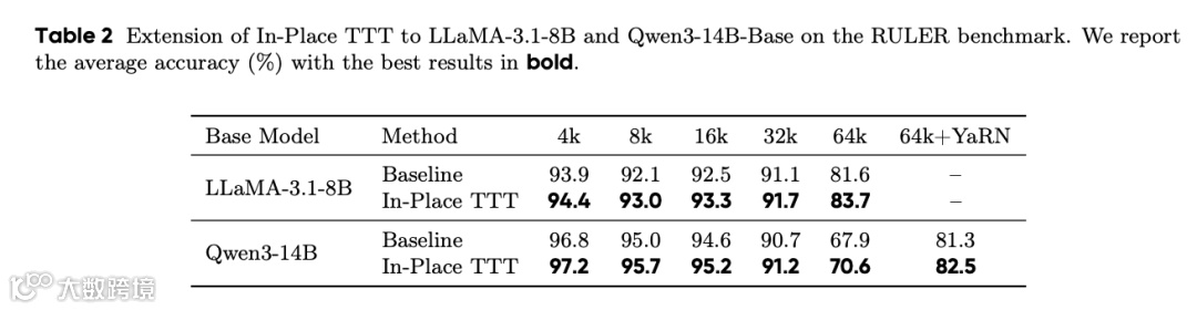 在Qwen3-4B等模型验证中,该方案在长上下文任务表现全面超越现有TTT方法。