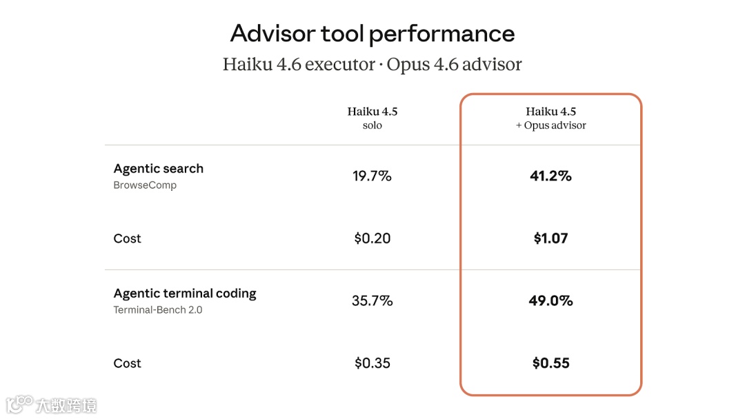 该架构颠覆传统"大模型拆解任务、小模型执行"模式:执行者独立处理常规流程,仅当遇到复杂难题时自动调用Opus提供策略指导。测试数据显示:
