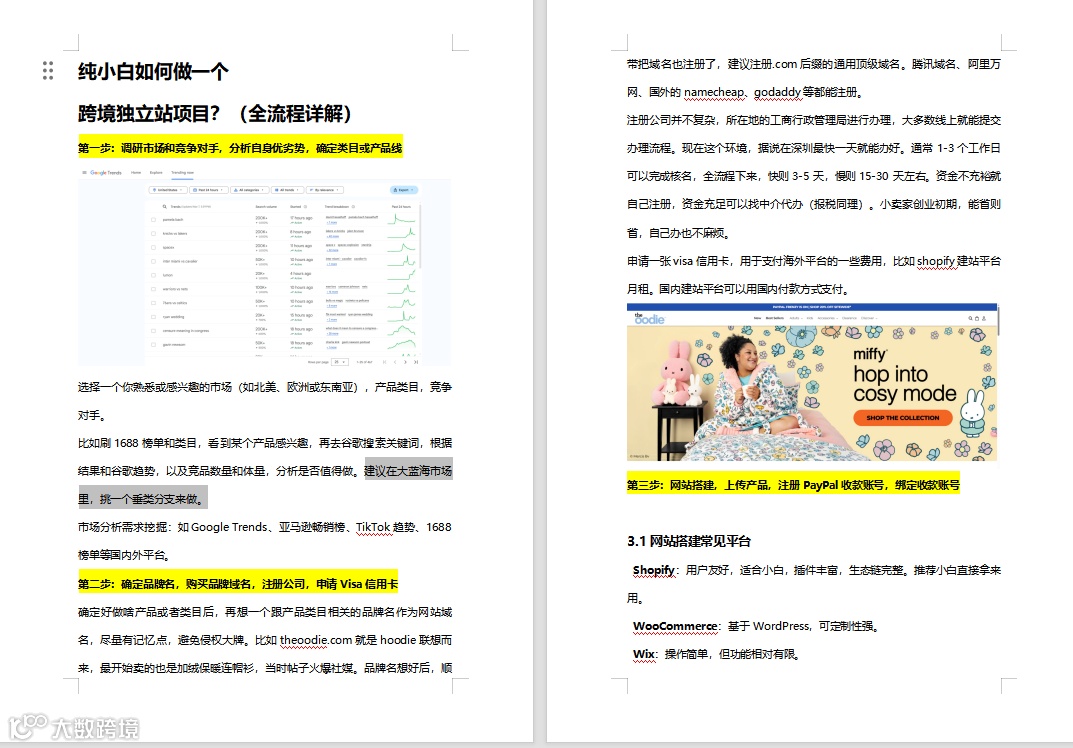 典型应用:独立站启动规划、Shopify店铺搭建、品牌域名设计、PayPal与物流配置、冷启动引流方案制定。适用于选品决策、建站执行、支付障碍等环节提供实操指导。