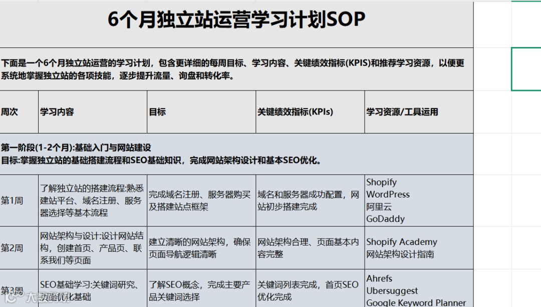 • 三阶段渐进模型:将6个月划分为"基础搭建→流量获取→转化提升"三大阶段,帮助新手卖家建立全栈运营能力,避免学习碎片化。