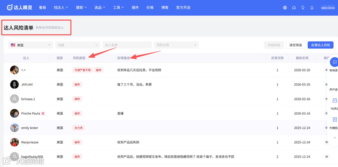达人全链路分析——支持全景画像评估、带货效率AI评分及黑名单预警,一键获取相似达人拓展资源池;