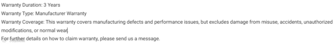提供完整保修详情可有效建立买家信任,减少客服咨询量与退货率。