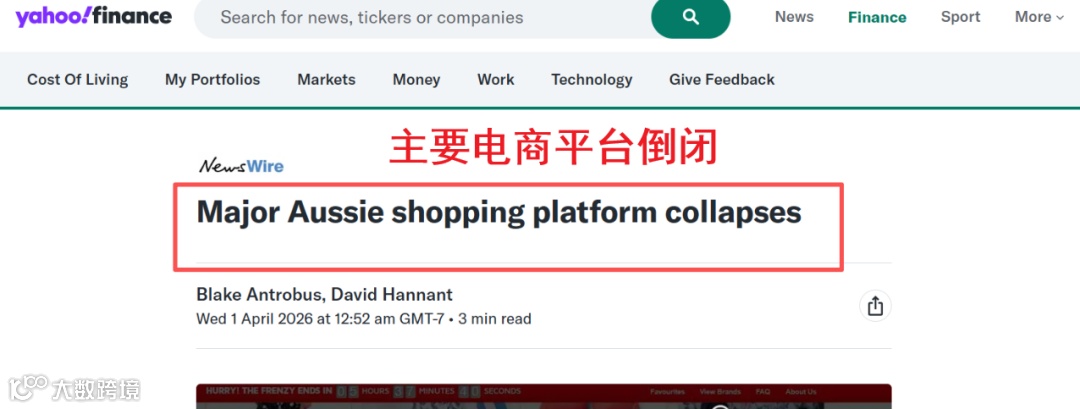 Click Frenzy的倒闭是澳洲市场萎缩的缩影。过去一年,多家头部平台相继关停:澳洲零售巨头Catch因连续亏损超3.5亿澳元于2025年4月停运;运营十余年的MyDeal在用户流失冲击下退出市场;会员制闪购平台Ozsale亦于2026年1月全面关闭。本土电商生态已发生根本性重构。