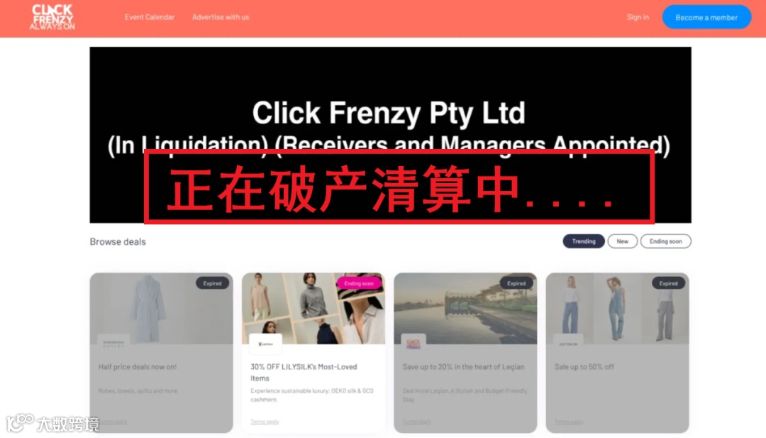 近日,澳洲电商圈传出重磅消息:运营14年的标志性促销平台Click Frenzy正式宣告破产清算。