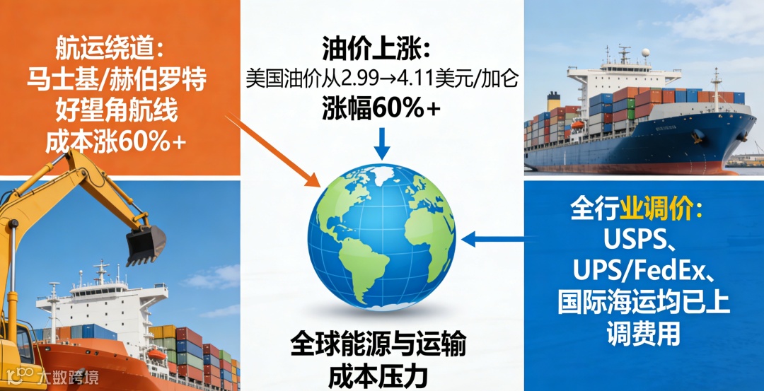 •全行业调价:USPS、UPS及FedEx均已加收燃油附加费(8%-25%),跨境电商物流成本占比升至30%-35%。