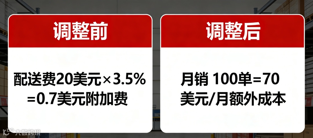 •大件商品卖家:附加费按配送费比例征收,基数高导致绝对成本增幅显著,部分卖家月增成本达数百至上千美元;